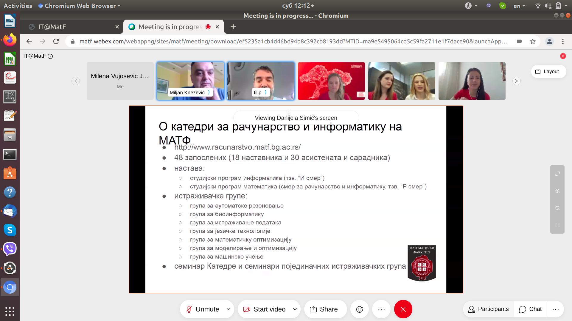 Šesnaest IT kompanija - prijatelja Katedre za računarstvo i informatiku predstavile su studentima Matematičkog fakulteta svoj rad, stručne prakse, stipendije, kurseve, poslove itd. (22.5.2021.):